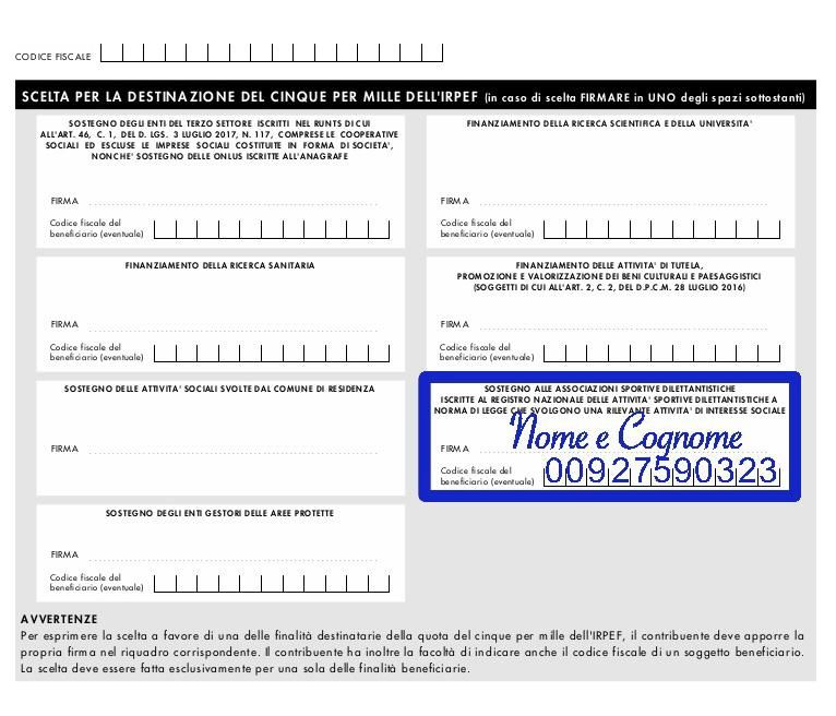 Molto presto tutti avremo la possibilità di contribuire concretamente all’ulteriore crescita della società attraverso la destinazione del 5×1000 nella dichiarazione dei redditi. Un gesto semplice, che non comporta alcun costo per il contribuente, ma che può fare la differenza nel sostenere l’attività sportiva dei nostri giovani atleti. Sarà sufficiente compilare l’apposito modulo inserendo il codice fiscale dell’associazione. Per qualsiasi dubbio è possibile rivolgersi in segreteria.